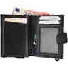 De luxe Kaarthouder Zwart Leer van Freebellion zorgt ervoor dat al jouw kaarten veilig bij elkaar op één plek staan. Dankzij de schuifknop die aan de onderkant is bevestigd worden de kaarten met 1 schuifbeweging gemakkelijk naar boven geschoven zoals te zien is op de afbeeldingen, zo heb je een mooi overzicht van al je kaarten en kan je snel de gewenste pas gebruiken.